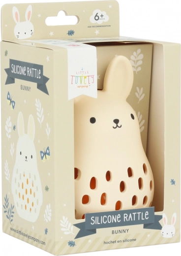 Iščete varno in zabavno igračo za svojega dojenčka? Ropotuljica v obliki zajčka znamke A Little Lovely Company je izdelana iz prilagodljivega silikona za stik z živili, ki je ne le mehak, ampak tudi varen za stik z otrokovimi usti. Ta ropotuljica je odličen spremljevalec za vašega malčka, spodbuja njegove senzorične sposobnosti in zagotavlja ure zabave: