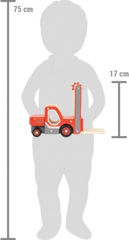 Popolno prevozno sredstvo za mlade logistične strokovnjake! Omogoča enostavno dvigovanje in premikanje bremen v otroški sobi zahvaljujoč premični vilici s pomočjo škripca. Del paketa je tudi lesena paleta, kar ga naredi nepogrešljivega v vsaki igrivi vozni floti.