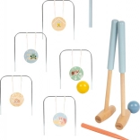 Zunanja igra kroket z živalskimi motivi prinaša veselje in gibanje v vsako družino. Set vsebuje lepo poslikane živalice – veverica, jež, zajček, sinica plavčka in žabica – ki igri dodajo privlačnost. Igra je izdelana iz kakovostnega lesa in je prilagodljiva različnim stopnjam težavnosti, zato je idealna izbira za vse generacije.