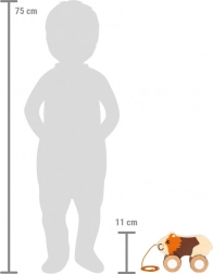 Ta vlečna igrača je zasnovana za spodbujanje razvoja motoričnih spretnosti in krepitev gibljivosti. Robustna konstrukcija z gumiranimi kolesi omogoča tekočo in tiho vožnjo, ki je idealna za vsak sprehod.