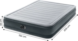 Iščete udobno in vzdržljivo rešitev za prenočevanje za goste ali na poti? Ta zakonska napihljiva postelja INTEX nudi visoko udobje spanja zahvaljujoč mehki velur površini, povišani višini in enakomerni razporeditvi teže. Integrirana električna črpalka poskrbi za hitro napihovanje in izpihovanje v nekaj minutah.