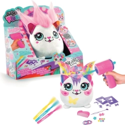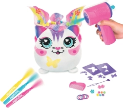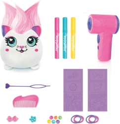 V tem edinstvenem setu boste našli plišasta z lasmi, baterijski airbrush pripomoček, tri flomastre in trideset šablon za neomejene možnosti okraševanja. Po pranju po navodilih lahko začnete znova in ustvarite nov dizajn.