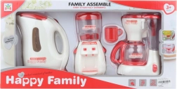 Ta komplet kuhinjskih aparatov je idealna izbira za otroke od 3 let dalje. Vsebuje tri različne naprave, zasnovane tako, da simulirajo prave kuhinjske aparate in otrokom nudijo veliko zabave ter ustvarjalnosti pri igri. Vsak aparat je napajan z baterijami, ki posnemajo dejansko delovanje.