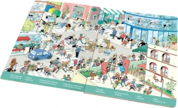 Potopite se v fascinantno dogajanje v mestu s to osupljivo velikoformatno knjigo. Spremljali boste vse od jutranjega vrveža do večernih skrivnosti. Vsaka stran je bogata z podrobnimi barvnimi slikami in duhovitimi situacijami, ki bodo zabavale tako otroke kot starše.