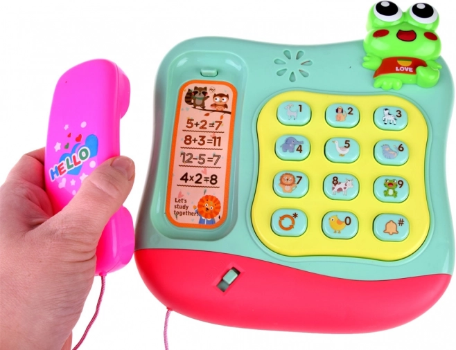 Oglejte si ta barvit glasbeni telefon za otroke, ki ponuja veliko zabave in poučnih funkcij. Vsak gumb na telefonu ne le predvaja različne melodije in zvoke, temveč je tudi označen s slikami živalic in številkami v angleščini. Ko dvignete slušalko, zazvoni zvok zvonečega telefona s pozdravno melodijo, medtem ko se ob odložitvi zasliši značilen zvok odlaganja slušalke.