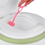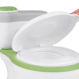 Ta kahlic je zasnovan tako, da se otrok uči samostojnosti udobno in brez stresa. Videz pravega stranišča, zvok splakovanja in melodije motivirajo k redni uporabi, medtem ko mehka blazinica in stabilno ogrodje zagotavljata varnost in udobje.