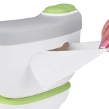Zaradi odstranljive notranje posodice je vzdrževanje stvar trenutka. Vgrajen dozirnik robčkov pomaga graditi higienske navade od malih nog, priložena čistilna ščetka pa olajša vsakodnevno nego.