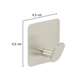 Praktičen komplet štirih samolepilnih kljukic iz nerjavnega jekla za hitro organizacijo brez vrtanja. Zahvaljujoč močnemu traku 3M zanesljivo držijo na ploščicah, steklu in lesu. Sodoben krtačen videz, preprosta namestitev v 10 sekundah in univerzalna uporaba v kopalnici, kuhinji in predsobi. Vsaka kljukica prenese do 1 kg in je odporna na vlago in korozijo.
