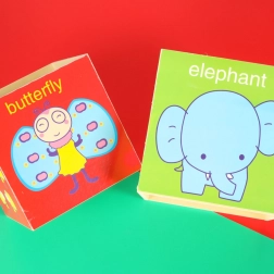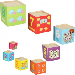 Otrok se nauči števil, štetja, osnovnih angleških besed in prepoznavanja priljubljenih kmečkih živali. Ena stran kocke prikazuje številko in njen angleški naziv, druga ustrezno število živalic. Naslednja stran vsebuje sliko živali z angleškim napisom. Ne manjkajo niti odprtine za prilagajanje oblik, kar je odlična vaja natančnosti in koordinacije oko–roka.