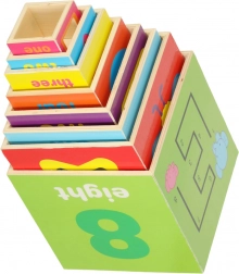 Kocke spodbujajo razvoj jezikovnih in matematičnih veščin, prepoznavanje oblik ter natančnost.
