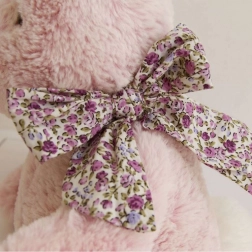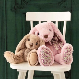 Nežna rožnata barva ter cvetlični detajli na ušesih in tačkah naredijo zajčka čudovit okras.