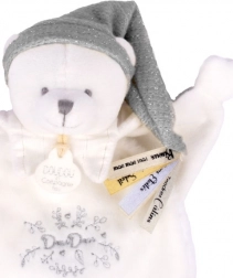 Plišasti medvedek znamke Doudou je izdelan iz vrhunskih materialov z nežnim sivim vezenjem na trebuščku, kar poudari njegov nežni videz. Njegovi prijetni materiali in trendovske barve ustvarjajo občutek varnosti in udobja za malčke. Zaradi svoje mehkobe spodbuja čute vašega dojenčka in je idealno darilo, ki razveseli vsakega starša.