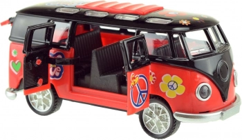 Slogovni retro avtobus združuje klasičen dizajn in moderno zabavo. Zahvaljujoč mehanizmu povratnega navijanja, realističnim svetlobnim efektom in zvoku motorja ponuja otrokom dinamično vožnjo, polno domišljije. Vzdržljiva kombinacija kovine in plastike zagotavlja dolgo življenjsko dobo tudi pri pogosti igri.