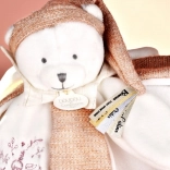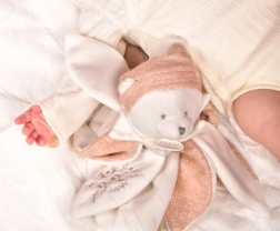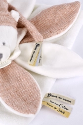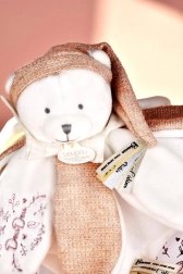 Satenasti trakovi z ljubečimi sporočili v francoščini, ki krasijo kapico in odejo, vsakemu objemu dodajo še nežnejši pridih. Igrača je pakirana v luksuzni darilni škatli, ki je znotraj osvetljena z LED diodami.
