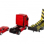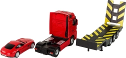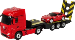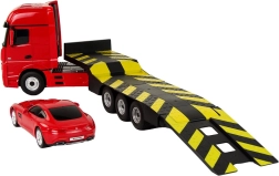 Ta odličen model polpriklopnika z rdečim avtomobilčkom Mercedes-Benz je idealno darilo za male ljubitelje prometa. Najprej pritegnejo pozornost temna okna in dovršeni detajli, ki prispevajo k pristnosti. Velika gumijasta kolesa zagotavljajo stabilnost pri prevozu drugih vozil.