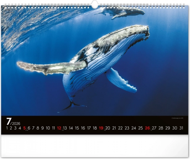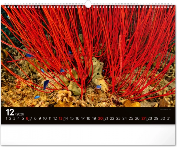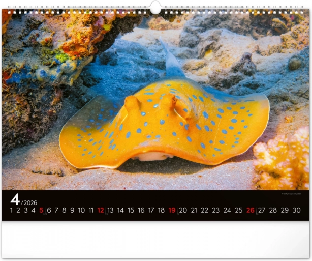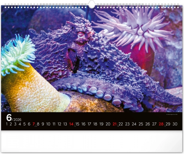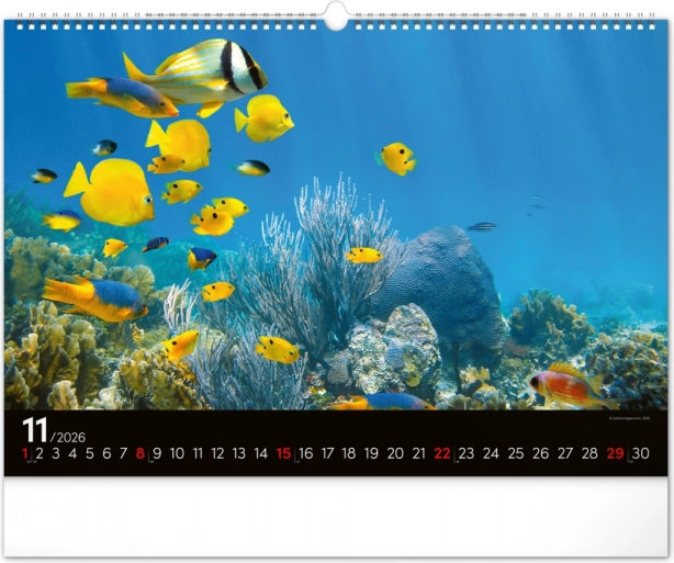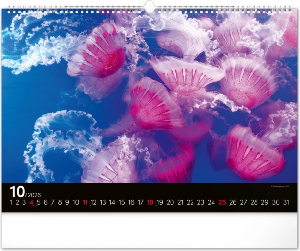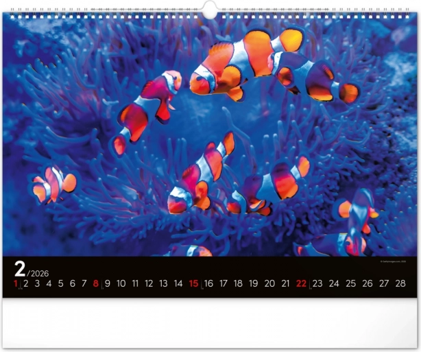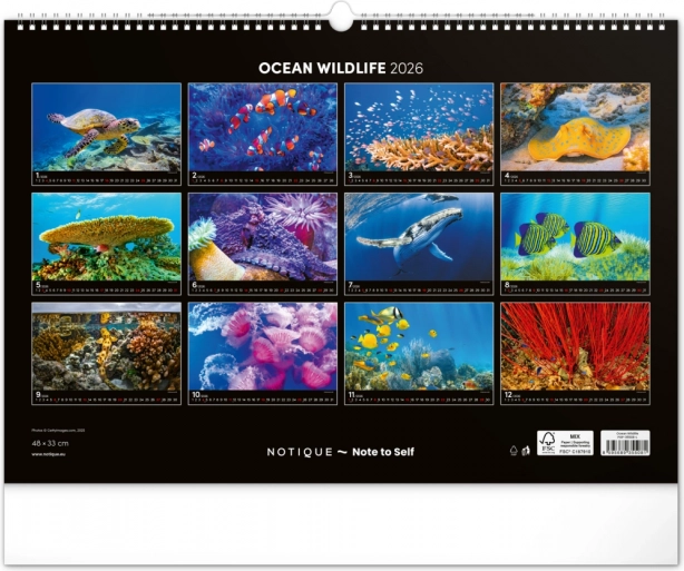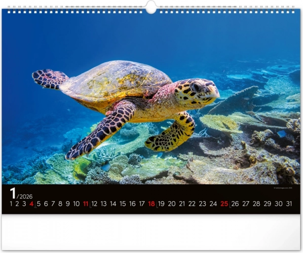 Naš stenski koledar Podvodni svet 2026 je idealen za ljubitelje narave in oceanov. Z luksuznim papirjem in živahnimi fotografijami ni le praktičen pomočnik za sledenje času, temveč tudi čudovit dekorativni element. Vsaka stran koledarja ujame specifično lepoto podvodnega sveta, od pisanih koral do mogočnih morskih živali.