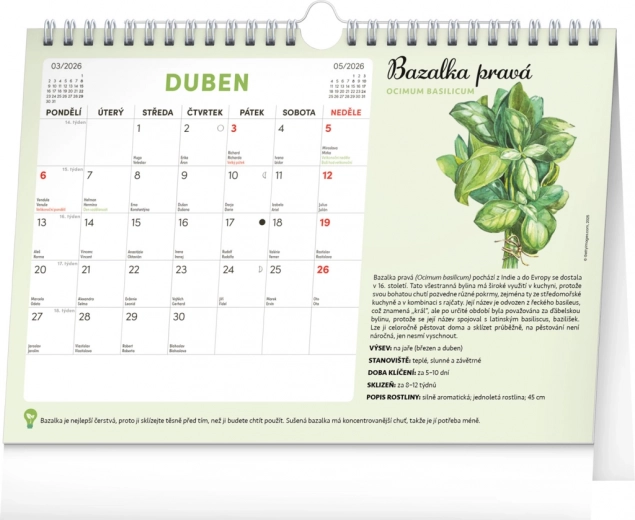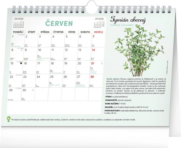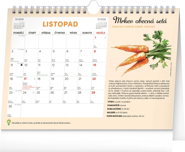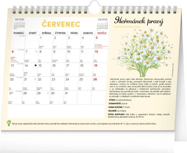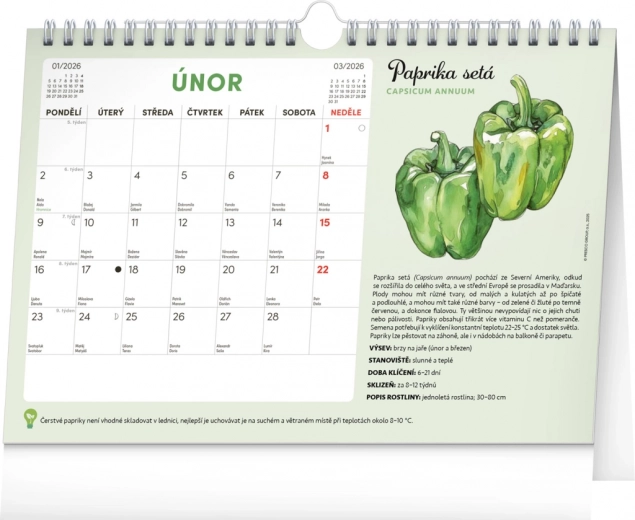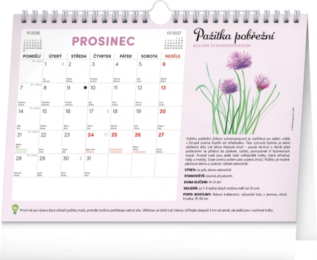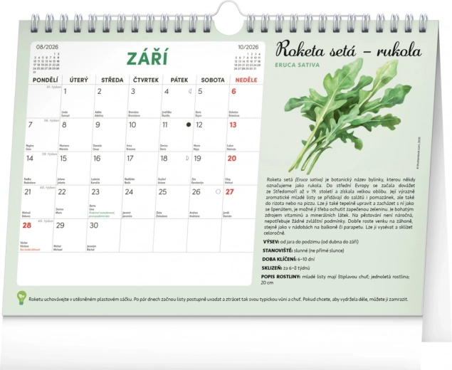 Namizni koledar Notique 2026 vam ponuja idealno povezavo praktičnega načrtovanja z možnostjo vrtnarjenja. Koledar vsebuje: