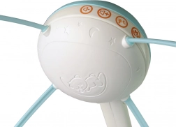 Vrtiljak je mogoče pritrditi na posteljico ali voziček. Svetlobna projekcija pritegne otrokovo pozornost. Vrtiljak ponuja uravnavanje glasnosti in se zahvaljujoč nastavljivemu nosilcu prilega večini posteljic.