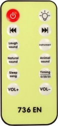 Upravljanje poteka z daljinskim upravljalnikom, ki uravnava osvetlitev, glasnost in zvoke. Funkcije vključujejo: