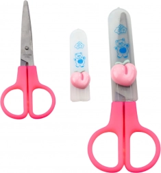 Škarje imajo zaobljene konice in zaščitni pokrov za največjo varnost pri uporabi otrok.