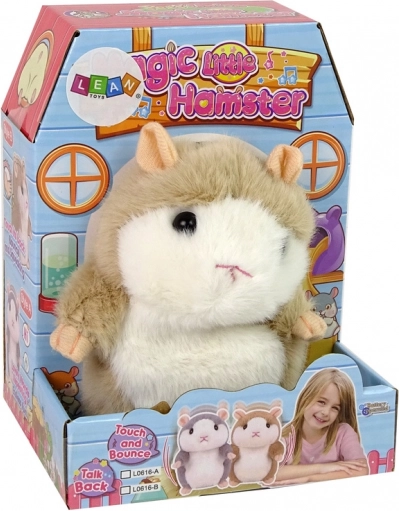 Ta vesel in živahen govoreči hrček bo zagotovo očaral vaše otroke. Lahko pomaga pri učenju prvih besed, poštevanke ali služi zgolj za zabavo. Odličen je način, kako obveznosti spremeniti v igro. Hrček ponavlja besede, ki jih sliši, zahvaljujoč posebnemu snemalnemu sistemu. Ima prijeten glas in videz, zaradi česar je med igračami prava najljubša. Poleg ponavljanja besed se med plesom premika gor in dol. Igrača je plišasta, mehka in idealna za crkljanje.