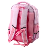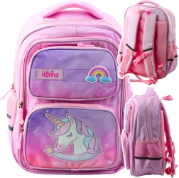 Šolski nahrbtnik ima dve prostorni glavni komori, pri čemer je glavna opremljena s pregrado, ki olajša organizacijo knjig in zvezkov. Na sprednji strani sta dva žepa na zadrgo, v katera lahko spravite peresnico, malico ali druge drobnarije. Na straneh so elastična žepa za steklenico ali bidon.