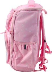 Nahrbtnik je opremljen z eno veliko glavno komoro, ki olajša shranjevanje knjig, zvezkov in večjih predmetov. Sprednji del ima tri dodatne žepe za peresnico, malico ali drugo opremo. Stranska dela imata dva elastična žepa za steklenico ali bidon.