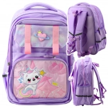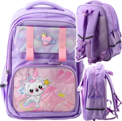 Uživajte v trendovskem slogu z našim vijoličnim šolskim nahrbtnikom z motivom mačke in praktičnimi odsevnimi elementi. Ta nahrbtnik združuje estetiko, funkcionalnost in udobje, zato je idealna izbira za vsakodnevne šolske dogodivščine.