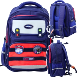 Ta šolski nahrbtnik ima prostoren glavni predal z notranjo pregrado za enostavno razporeditev knjig in zvezkov. Otrokom je na voljo drugi manjši predal, sprednji žep in majhen žepek z ježkom. Sprednji del nahrbtnika vsebuje trakove z ježki, na katere je mogoče pritrjevati okrasne elemente za individualni značaj nahrbtnika. Del paketa so našitki s kozmičnimi motivi, kot so planeti in rakete.