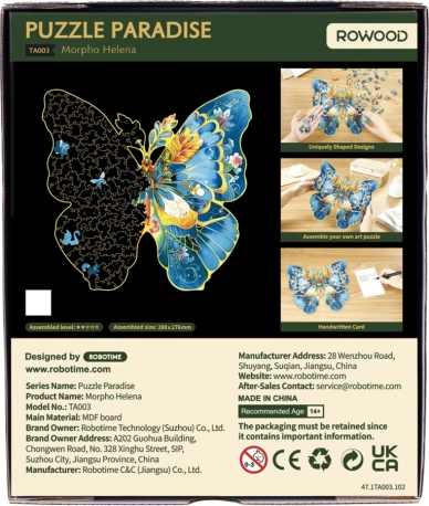 RoboTime Lesene sestavljanke Metulj Morpho Helena predstavljajo izziv za vaš možgan, spodbujajo fino motoriko in sposobnosti reševanja problemov. Pri sestavljanju razvijajo logično razmišljanje in vašemu domu ali pisarni dodajo edinstven dekorativni element.