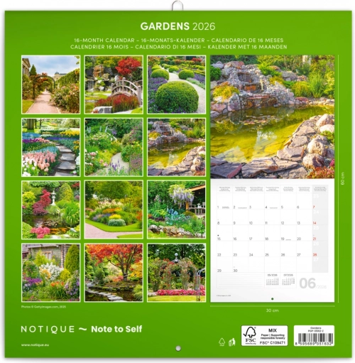 Poživite svoj dom z beležniškim koledarjem, ki ponuja lepe fotografije izjemnih vrtov in uporabne funkcije za celo leto 2026.