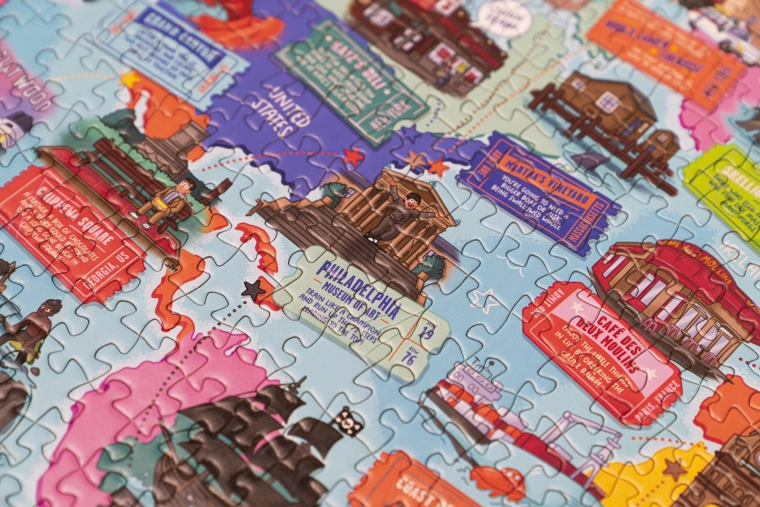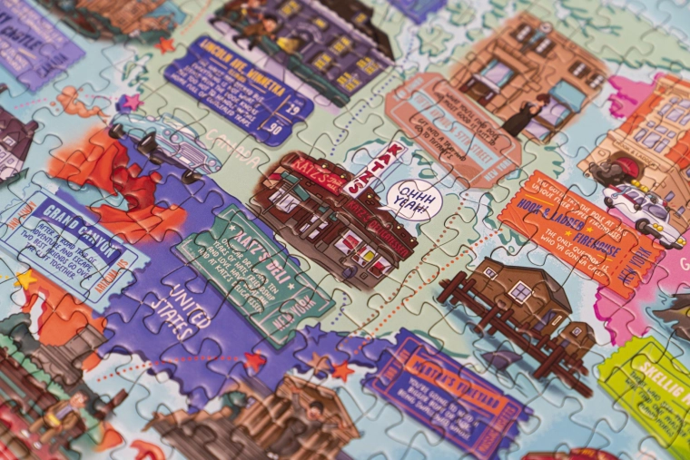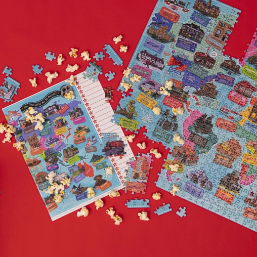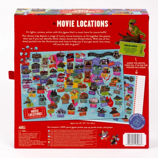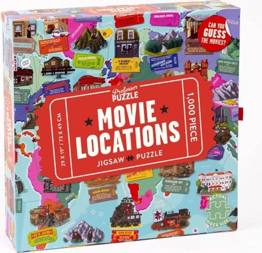 Izzovite svoje filmsko znanje s to zabavno sestavljanko s 1000 kosi, ki prikazuje ikonične filmske lokacije! Ugotovite, ali lahko prepoznate, iz katerega filma so posamezne scene.