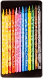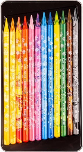 Barvice so pakirane v elegantni pločevinasti škatli, ki vsebuje 12 kosov tega edinstvenega pripomočka za vse ljubitelje ustvarjalnosti.