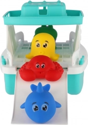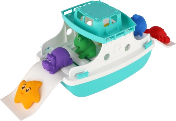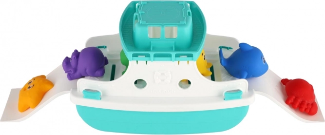 Ta otroški čolniček za kopel je zasnovan za zabavo in razvoj veščin. Plava na vodi, ima preklopno rampo za nakladanje in razkladanje figuric ter ponuja dovolj prostora za igro na krovu. Priložene so mehke, barvite morske in živalske figurice, ki jih lahko otroci prevažajo, zlagajo in spuščajo po rampi.
