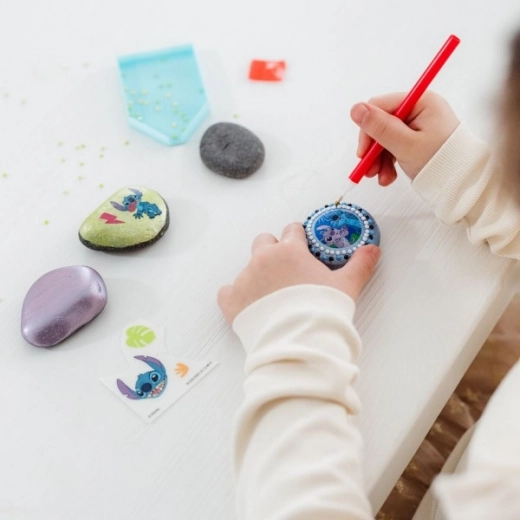 Odkrijte čar ustvarjanja s kompletom za slikanje in okraševanje kamnov z motivom Stitch. Popoln kreativni set vsebuje vse, kar potrebujete – od kamnov in nalepk do posebnih orodij za prenos kamenčkov. Odlično za razvoj fine motorike, domišljije in zabavo za otroke in odrasle.