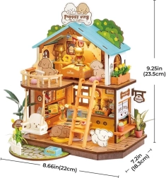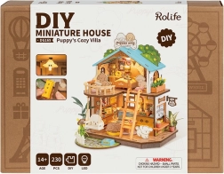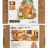 Odkrijte čar ustvarjanja s hišico, ki vključuje prostorno spalnico, udoben bivalni prostor z gugalom in jedilnim kotom ter v prvem nadstropju balkon. Vsaka podrobnost je natančno izrezana, vključuje mehko posteljnino, nočno omarico z lučko, prenosnik, knjižno polico, aparat za kapučino in rože. Zahvaljujoč LED osvetlitvi v pritličju in prvem nadstropju se vaš ljubljenček počuti prijetno.