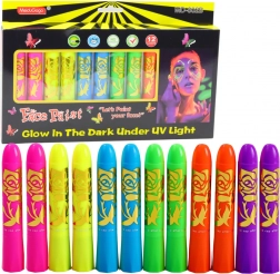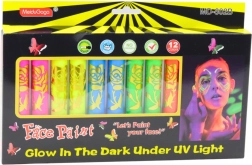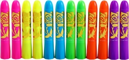 Set vsebuje 12 flomastrov v intenzivnih, fluorescentnih barvah – po dva od vsake barve, kar omogoča deljenje med sorojenci ali prijatelji. Flomastri so popolni za vsakodnevne igre, tematske zabave, rojstne dneve, karnevale, festivale in noč čarovnic.