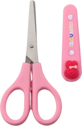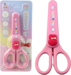 Škarje so opremljene z dekorativnim zaščitnim pokrovčkom, ki ščiti rezila pred poškodbami in zagotavlja varnost vsebine nahrbtnika ali peresnice. Pastelno roza barva z barvnimi okraski daje izdelku edinstven videz.