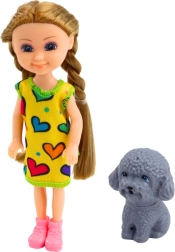 Razveselite svoje otroke s setom, v katerem 14,5 cm visoka punčka v barvitem oblačilu pritegne pogled in liku doda značaj. Figura kužka spremlja punčko v igri, kar omogoča uprizoritev dejavnosti, kot so skupni sprehodi, hranjenje, nega ali igra v parku.