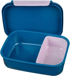 Široko zapiranje s sponko omogoča enostavno odpiranje in varno zapiranje, kar je idealno za majhne otroške roke. V notranjosti boste našli odstranljiv predalček, ki olajša ločeno shranjevanje različnih živil, kot so sadje, piškoti ali sendviči.