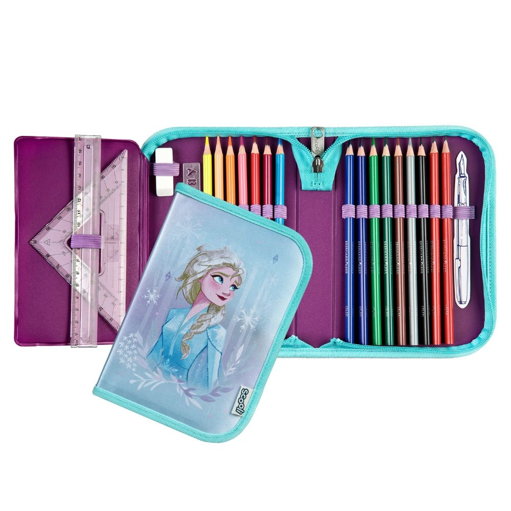 Šolski peresnik Frozen Undercover prinaša dizajn iz priljubljenega filma Ledeno kraljestvo, ki bo všeč mlajšim in starejšim otrokom. Izdelan je iz trpežnega poliestra, kar zagotavlja dolgo življenjsko dobo in zaščito vsebine. Z merami 14 x 20 x 3 cm ponuja dovolj prostora za celoten komplet šolskih potrebščin, vključno z 14 barvicami, svinčniki, ravnilom in drugimi pripomočki.