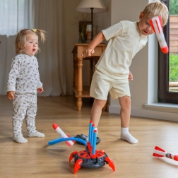 Igrača spodbuja grobo motoriko, koordinacijske sposobnosti in radovednost za znanost. Zaradi preprostega sestavljanja brez orodja je idealna za vrt, park in dvorišče – mehke konice raket pa zagotavljajo varno zabavo brez ostrih robov.