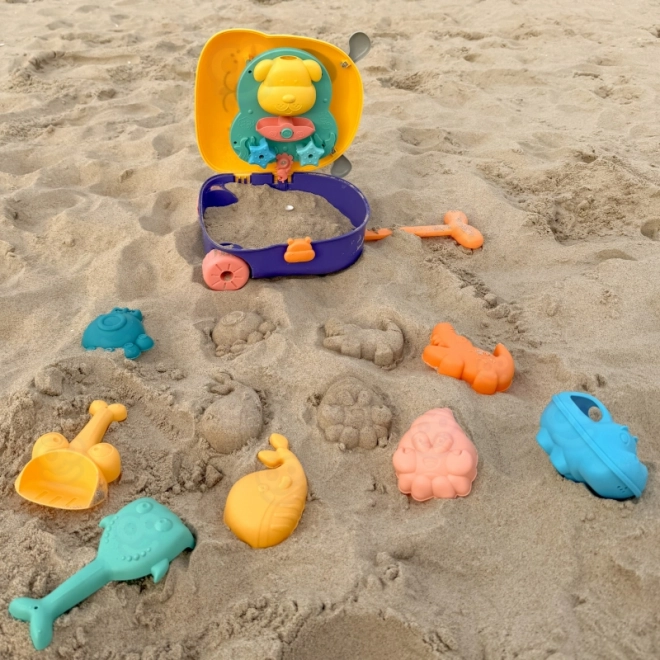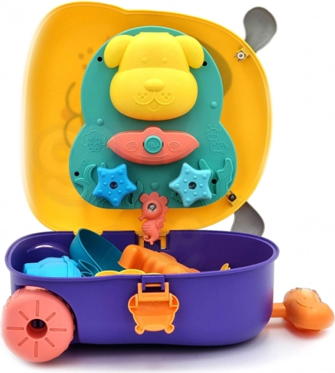 Ta prenosni kovček se spremeni v majhen vodni peskovnik, ki zabava otroke doma, na vrtu in na plaži. Zahvaljujoč bogatim dodatkom bodo otroci uživali v ustvarjanju iz peska in hkrati odkrivanju vodnih učinkov. Igrača podpira fino motoriko, ustvarjalnost in čutno zaznavanje.
