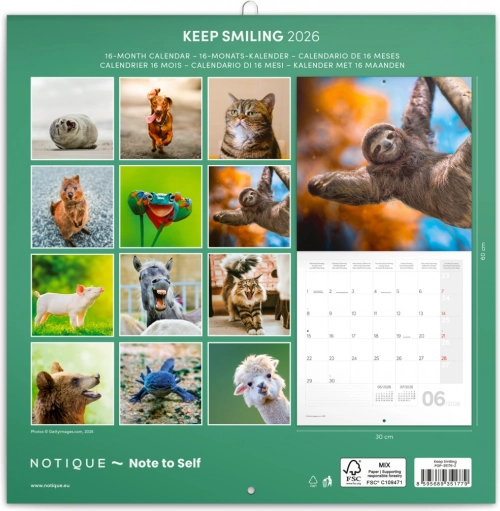 Vnesite v svoj dom ali pisarno veselje in nasmejane trenutke vsak dan z našim beležniškim koledarjem »Nasmeh, prosim« za leto 2026. Čudovite fotografije prikupnih živali vas bodo navdihovale vse leto. Koledar ne zaostaja niti po funkcionalnosti: