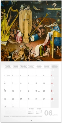 Podajte se v svet fascinantnih in nadrealističnih podob Hieronima Boscha z beležniškim koledarjem za leto 2026. Podrobne kompozicije, polne simbolike in mističnih prizorov, vas popeljejo v umetnikove fantastične vizije.