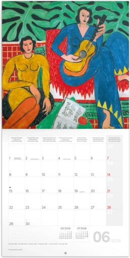 Beležni koledar Henri Matisse 2026 prinaša dela enega najpomembnejših umetnikov 20. stoletja na vašo steno. Namenjen je vsakemu ljubitelju umetnosti, ki želi vsak dan odkrivati svet barv in oblik Henrija Matissa.