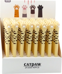 Gel pero z mačjo tačko v rumeni različici z rjavimi črtami je idealna kombinacija udobja in zabavnega dizajna. Njegovo prožno ohišje iz mehke gume omogoča prijetno uporabo, prisrčna tačka z izboklinami pa prinaša dekorativen element. Nežne črte v tigrovem slogu naredijo pero izjemno med klasičnimi pisarniškimi pripomočki.