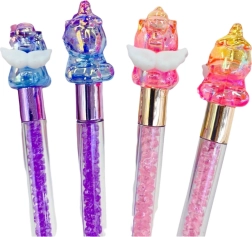 Gelno pero s črnim črnilom in barvitim videzom, okrašeno z vrtečo se figurico samoroga, prinaša spoj praktične funkcije in edinstvenega čara. Odlično leži v roki zaradi dolžine 17 cm in ga je enostavno prenašati v peresnici, kozmetični torbici ali torbici.