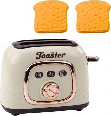 Paket vključuje dva plastična toasta, ki ju je mogoče večkrat vstaviti in izskočiti iz toasterja s preprostim mehanizmom. Ta igrača je idealna za otroško kuhinjo, za samostojno ali skupinsko igro.