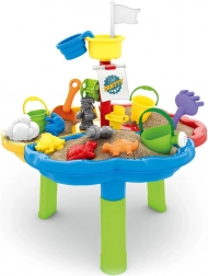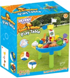 Miza je razdeljena na tri dele - posebej za vodo, pesek in prostor za igro. Dodanih 13 dodatkov prinaša še več zabave! Set je idealen za uporabo doma ali na vrtu, na primer na plaži ali dvorišču.